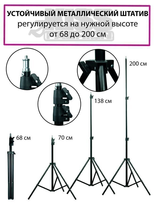 Кольцевая лампа 26 см со штативом держателем для телефона селфи-пультом для селфи. Модель 123151