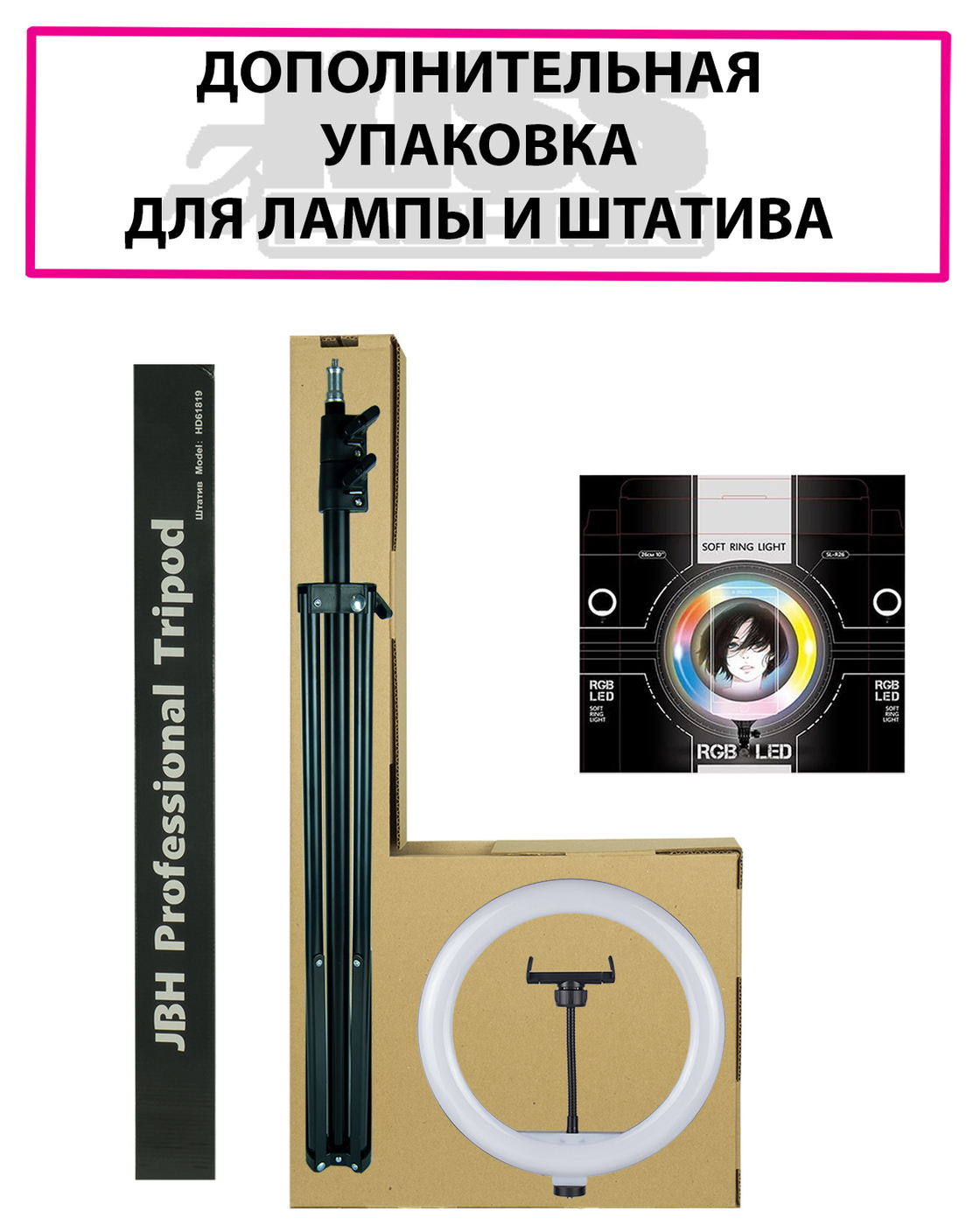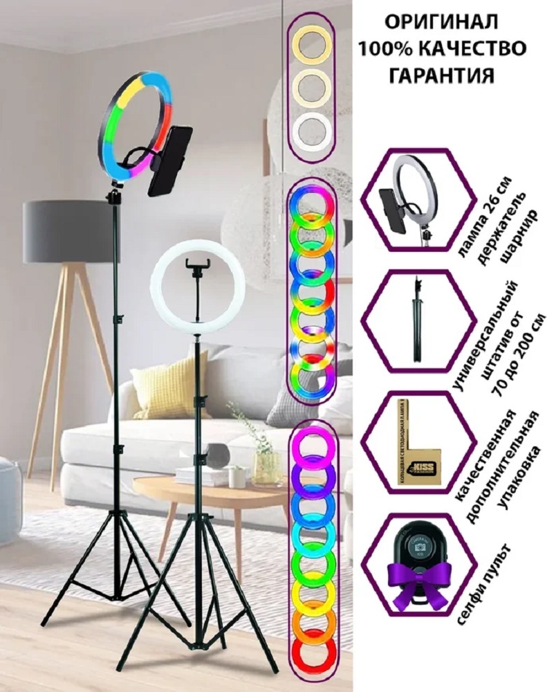 Кольцевая LED-лампа 26 см zKissfashion RGB цветная со штативом держателем для телефона и селфи-пультом. Модель 123267. Уцененный товар
