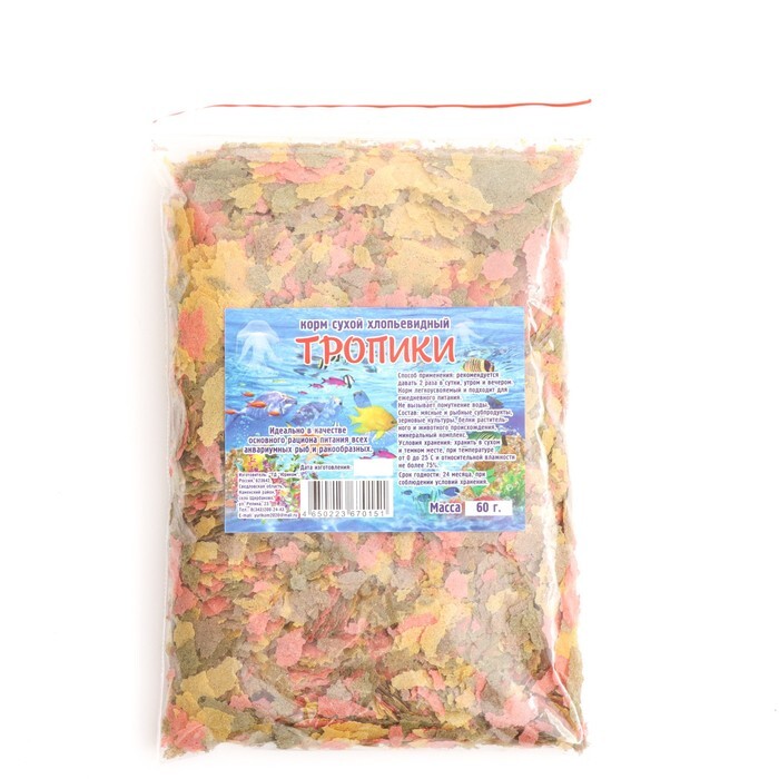 Корм сухой для аквариумных рыб и ракообразных, хлопья, пакет, 60 г
