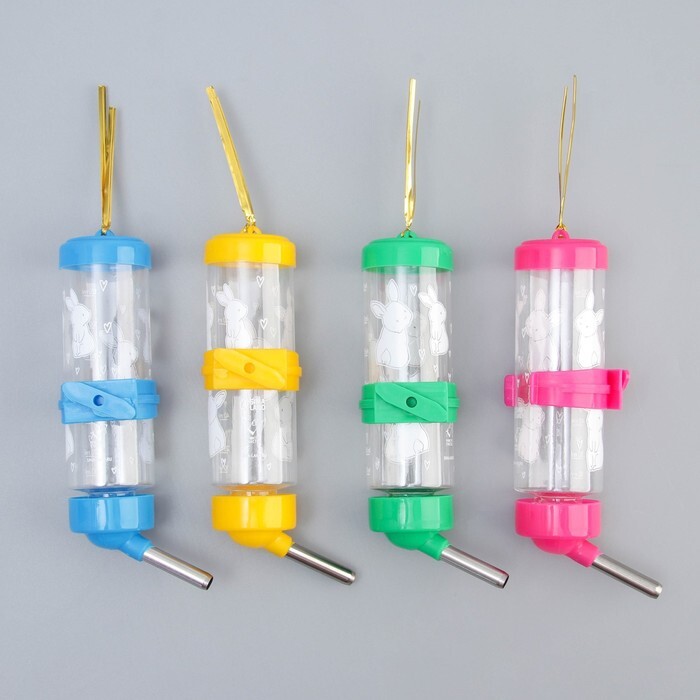 Поилка для грызунов "Кролики", 125 мл, 12.5х4.5 см, микс цветов