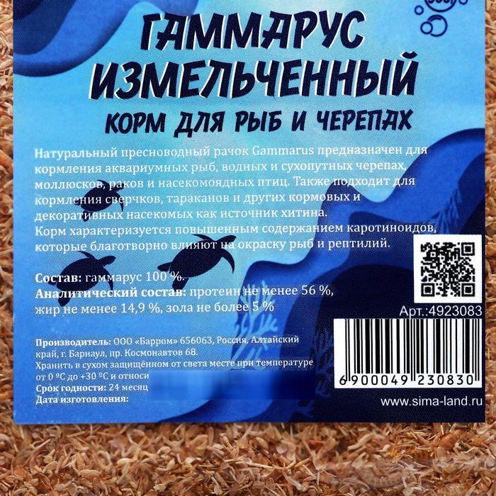 Корм для рыб и черепах гаммарус измельченный, 500 г