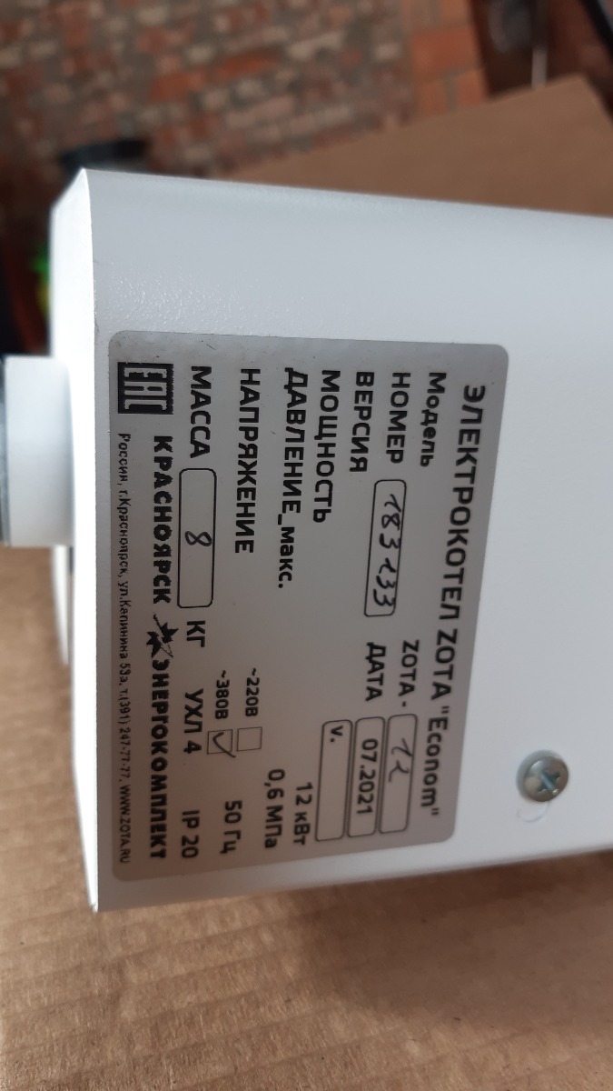 Котел электрический ZOTA Econom 12 кВт (до 120 м2)