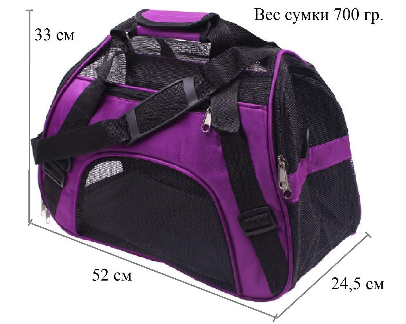 Дорожная сумка переноска для животных L, фиолетовая, 52*24,5 *33см