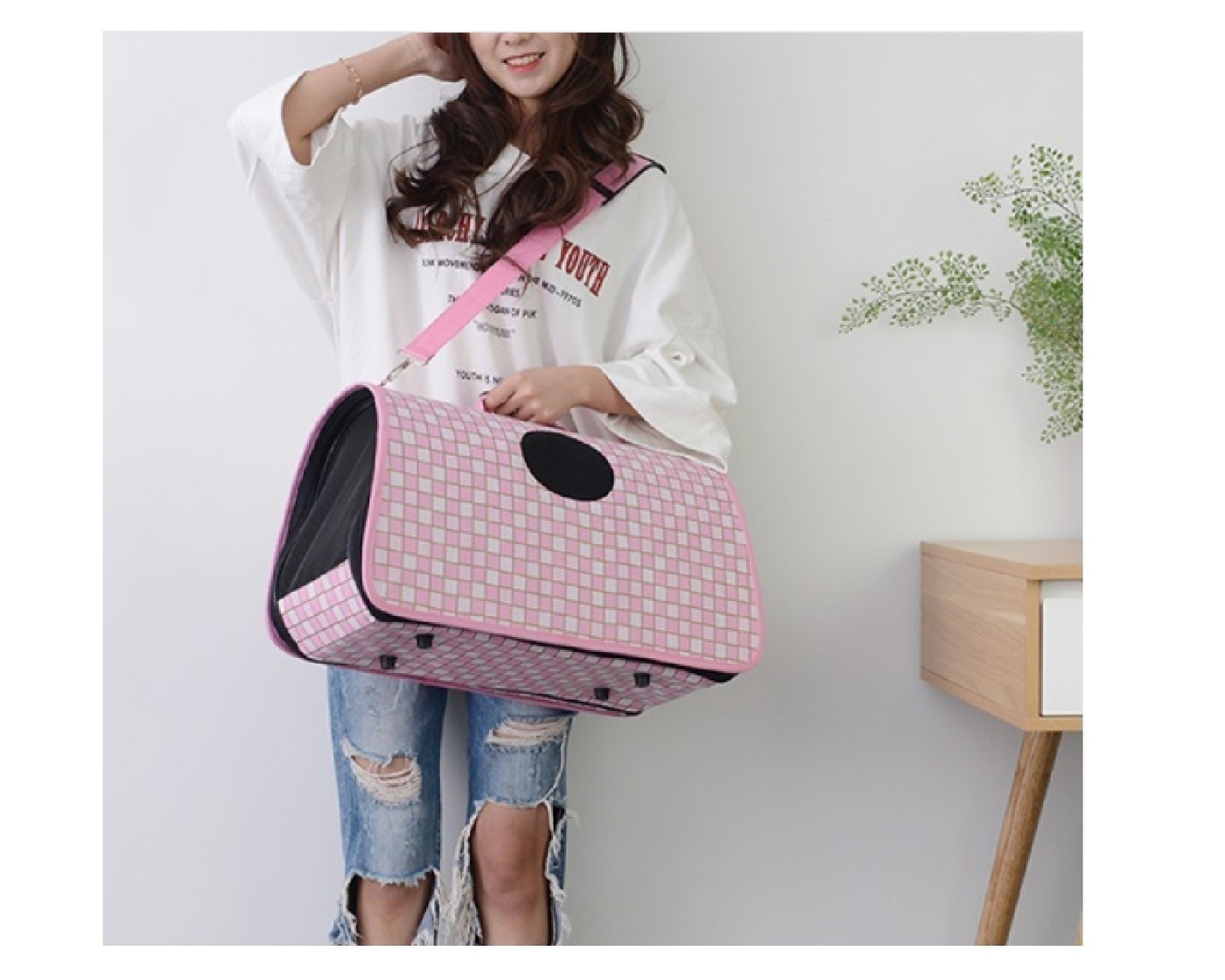 Складная сумка-переноска для домашних животных, размер М, 45*22*26 см, розовая