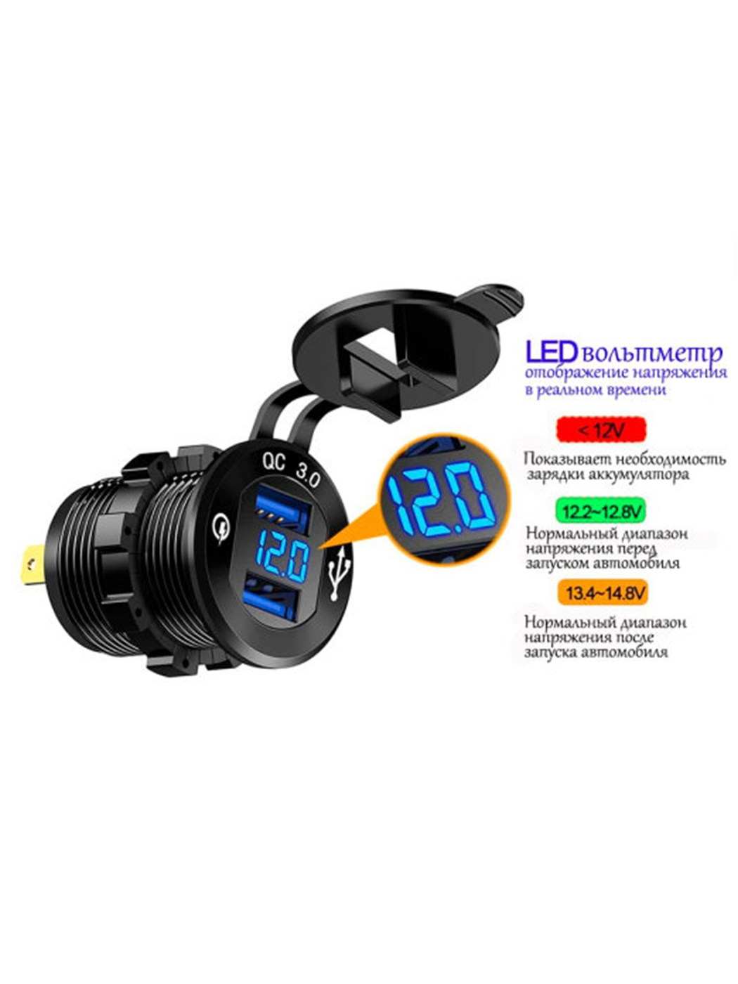 Разъем USB в авто врезной GH-DS21 / Розетка в автомобиль / 2USB + Вольтметр - zQz арт. DX-10
