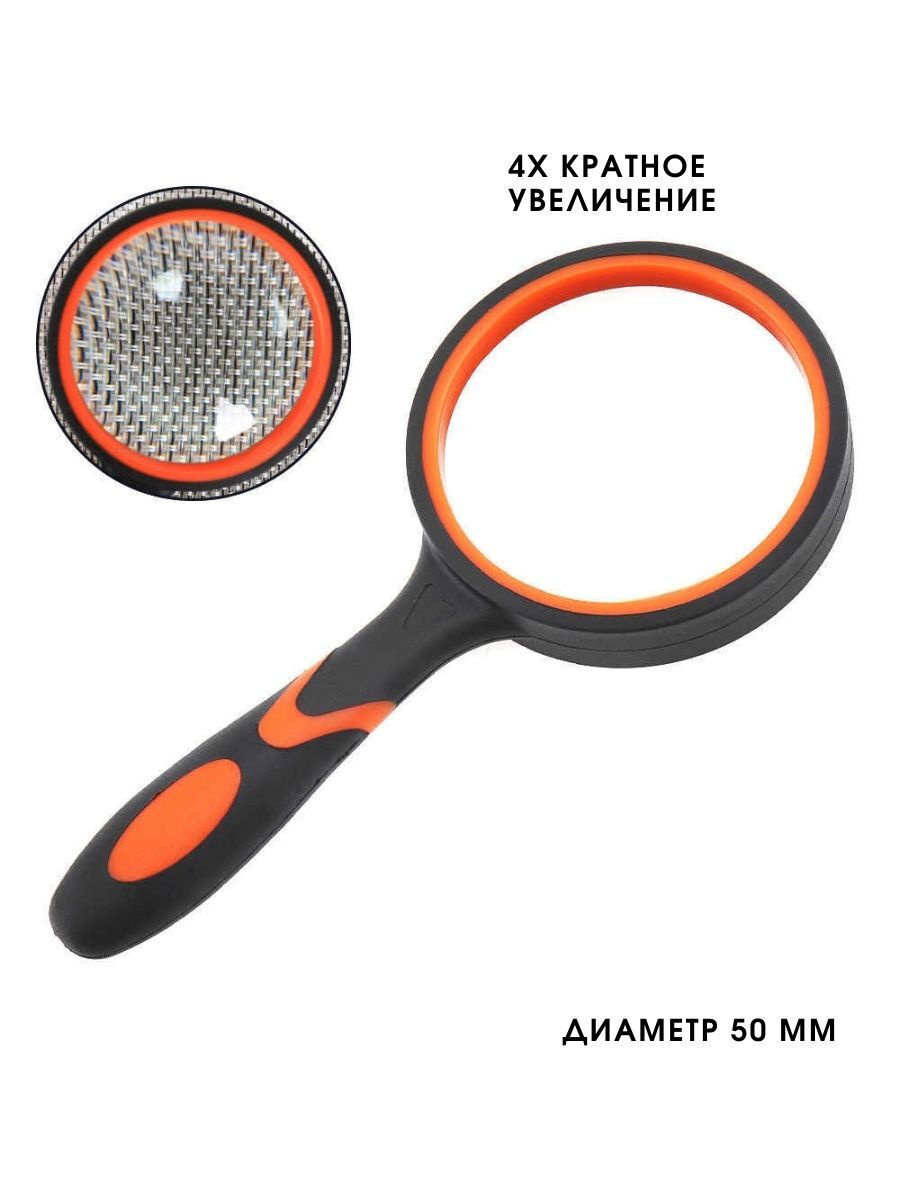 Лупа ручная круглая 10х, 50 мм, с двухцветной ручкой
