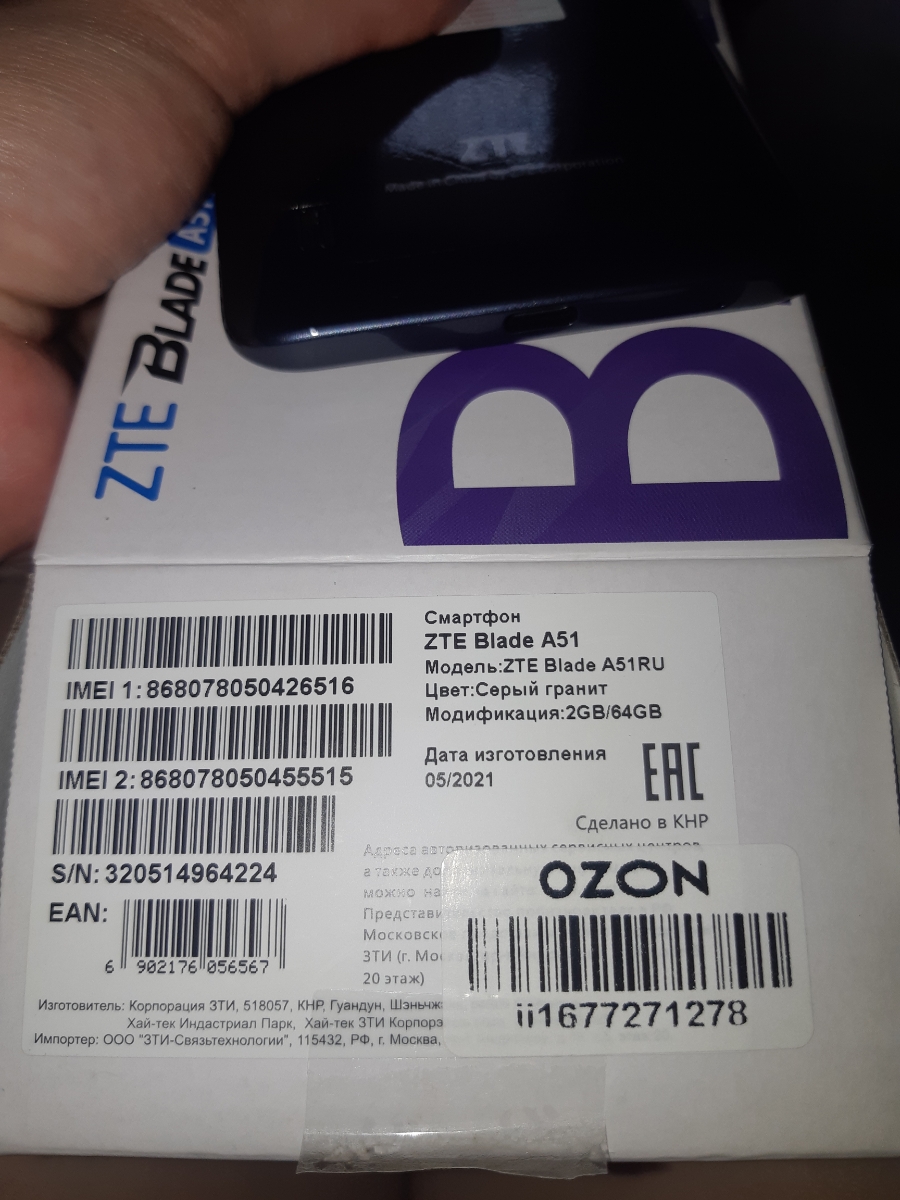 Смартфон ZTE Blade A3 (2020) 1/32GB Violet 1/32GB, синий