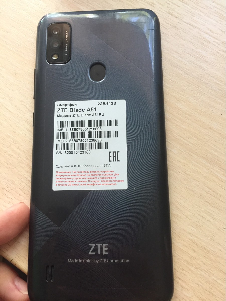 Смартфон ZTE Blade A51 2/64GB, синий. Уцененный товар