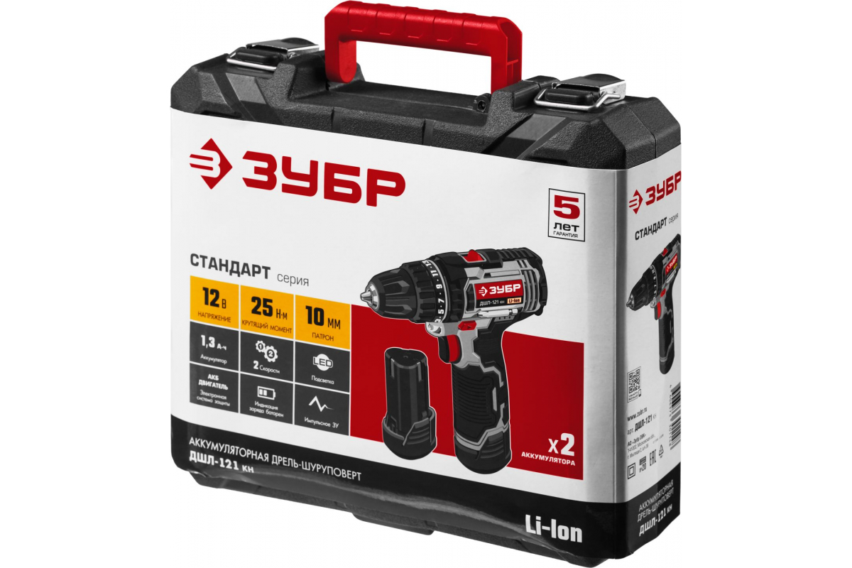 Дрель ЗУБР ДШЛ-121 КН, От аккумулятора, 12 В