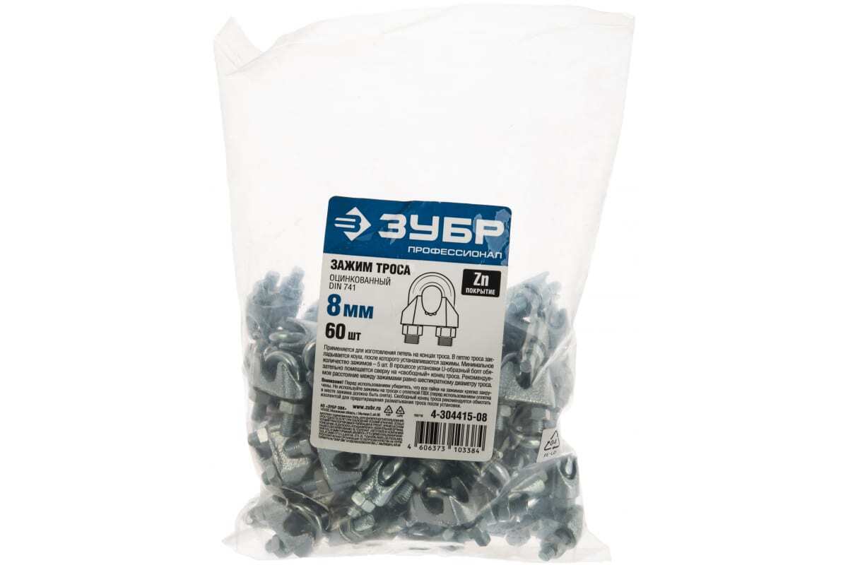 Зажим троса ЗУБР Профессионал DIN 741 8 мм 60 шт. 4-304415-08