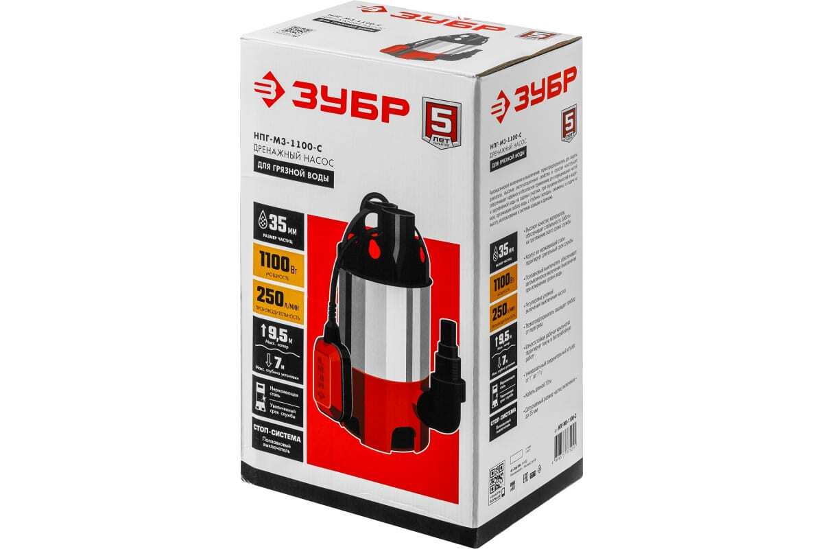 Насос дренажный ЗУБР 1100 Вт для грязной воды НПГ-М3-1100-С
