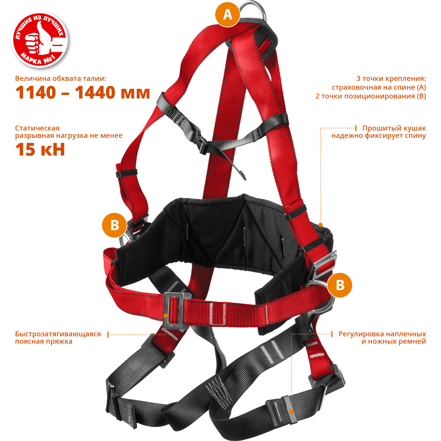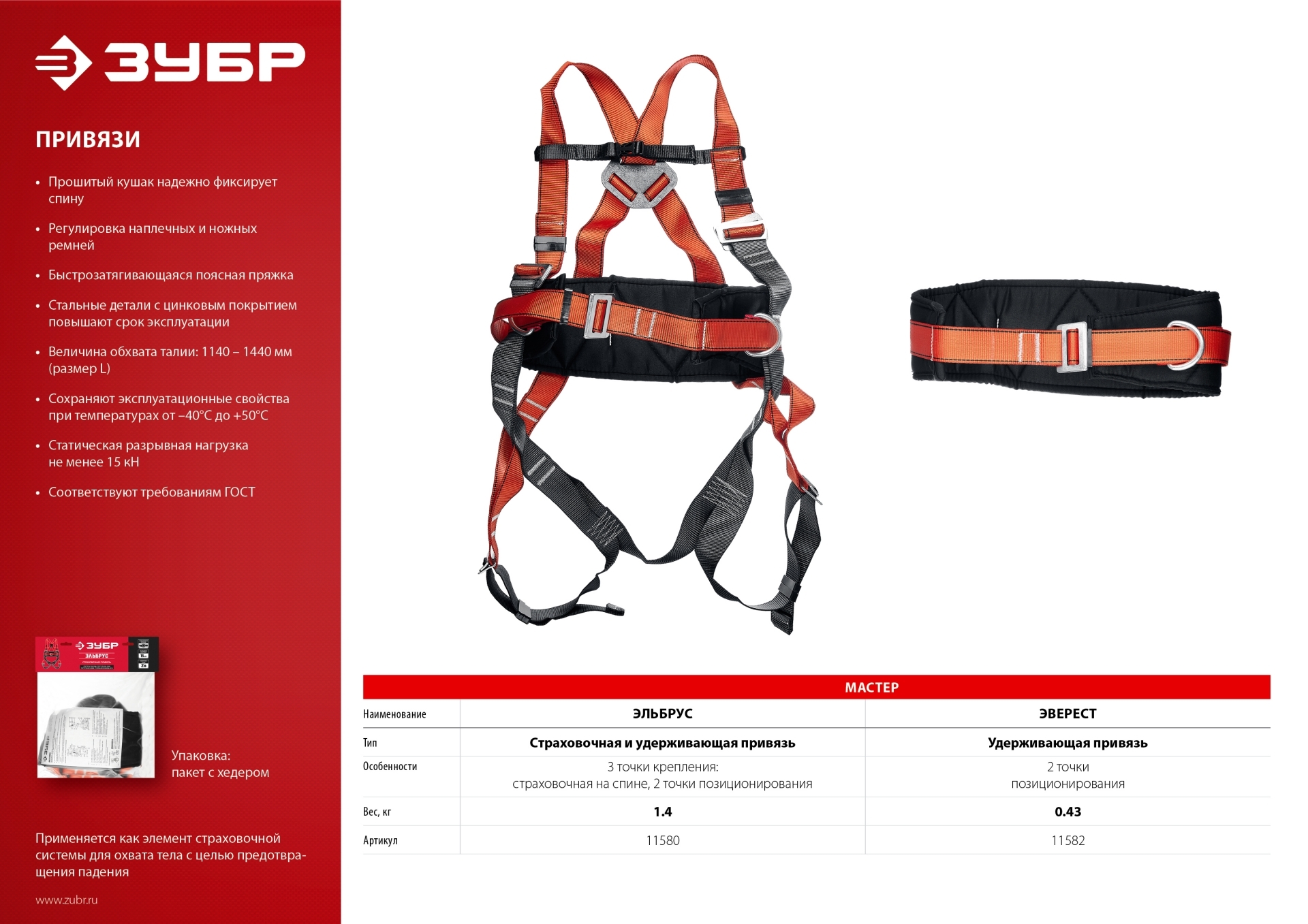 Страховочная и удерживающая привязь ЗУБР Эльбрус 3 точки крепления 11580