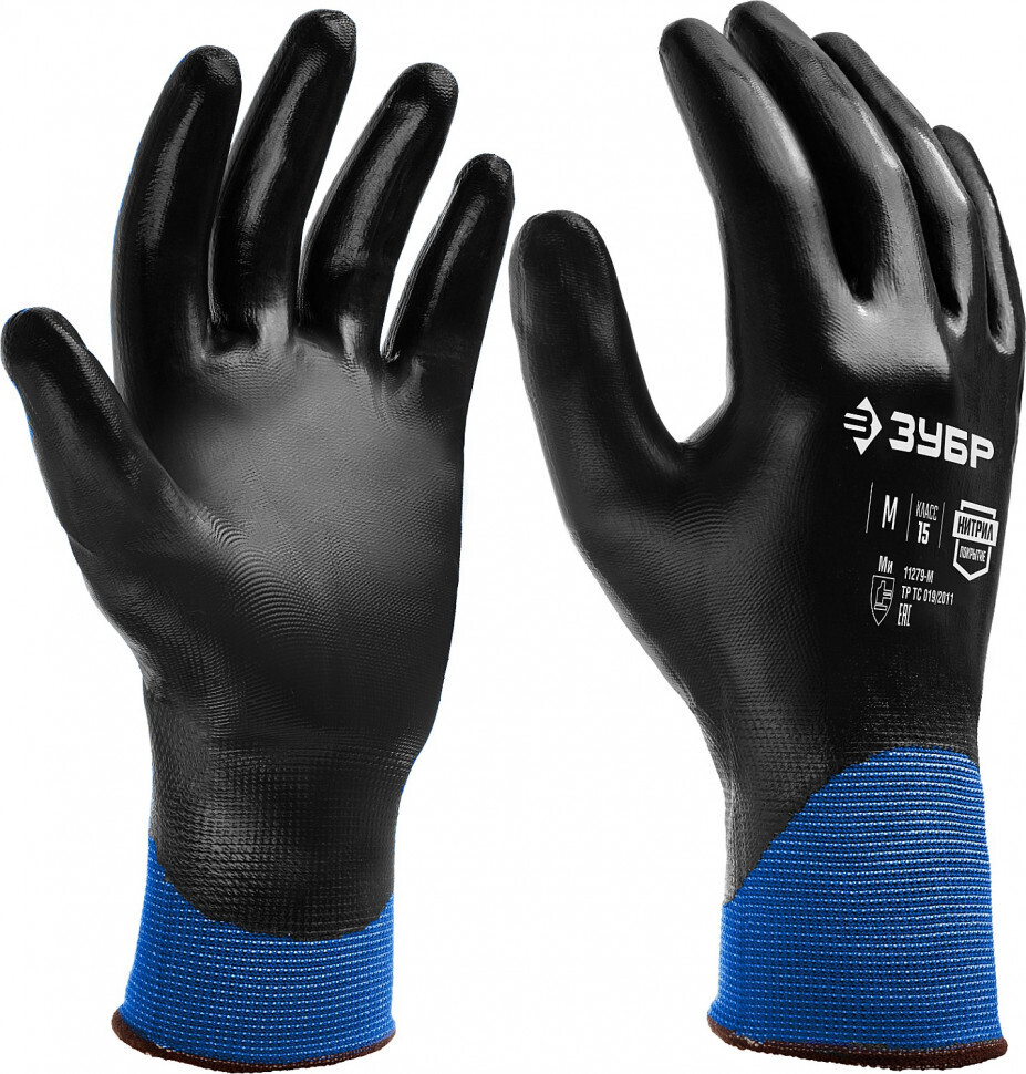 ЗУБР МЕХАНИК+ размер L, полный облив, перчатки маслобензостойкие тонкие 11279-L