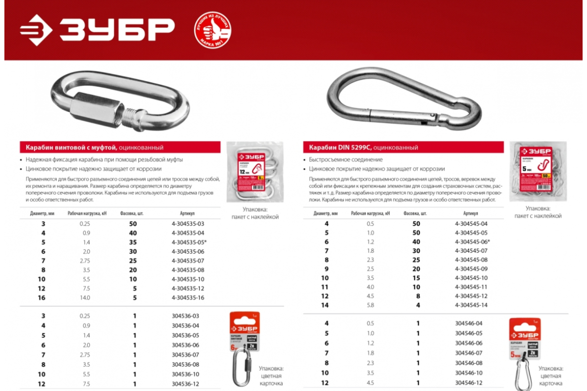 Карабин быстросъемный ЗУБР DIN 5299C 7 мм 30 шт. 4-304545-07