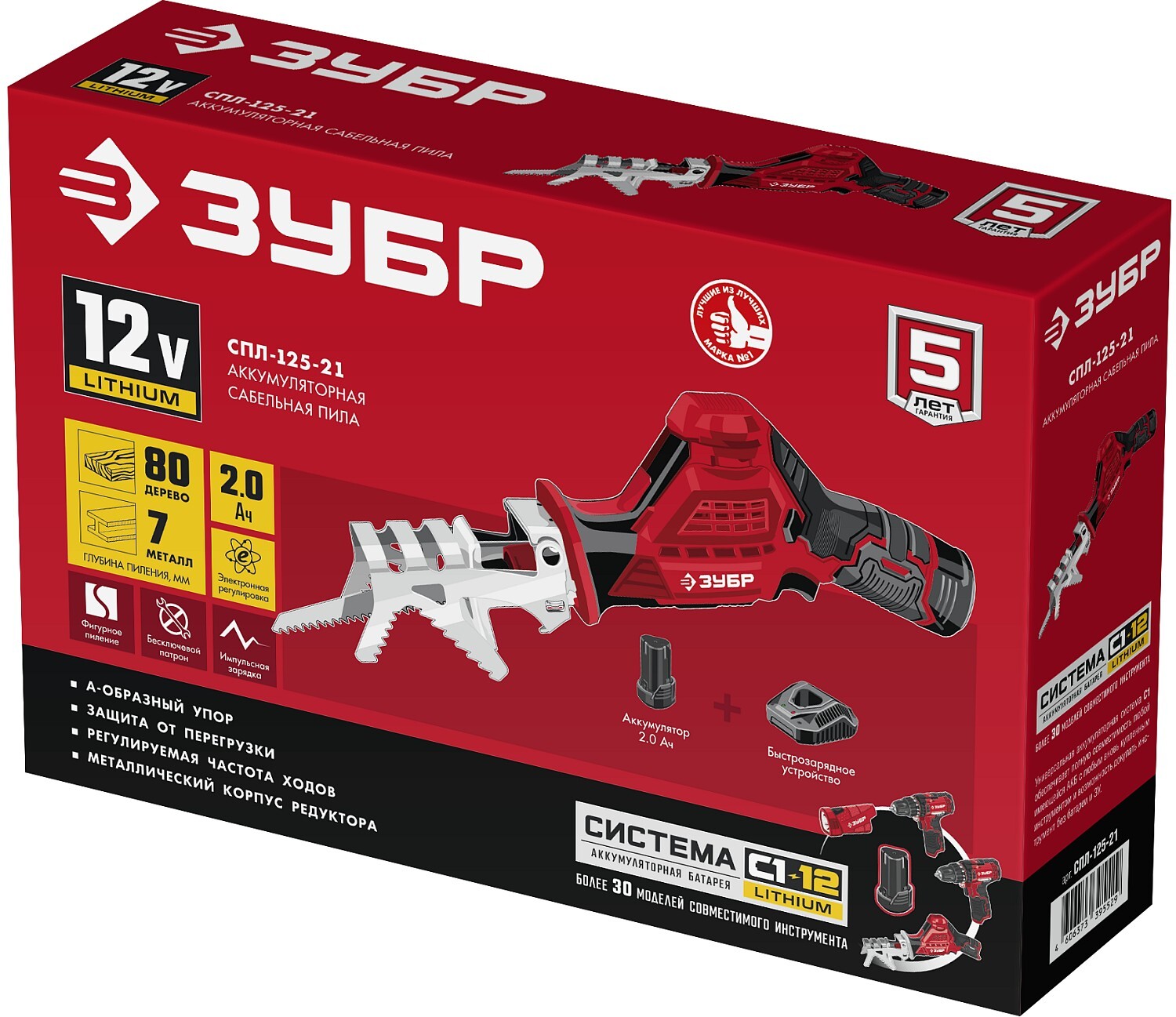 ЗУБР 12В, 1 АКБ (2Ач), в коробке, пила сабельная. СПЛ-125-21