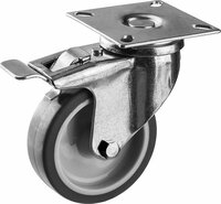 Колесо поворотное с тормозом d=75 мм, г/п 60 кг, термопластич. резина/полипропилен, ЗУБР 30946-75-B