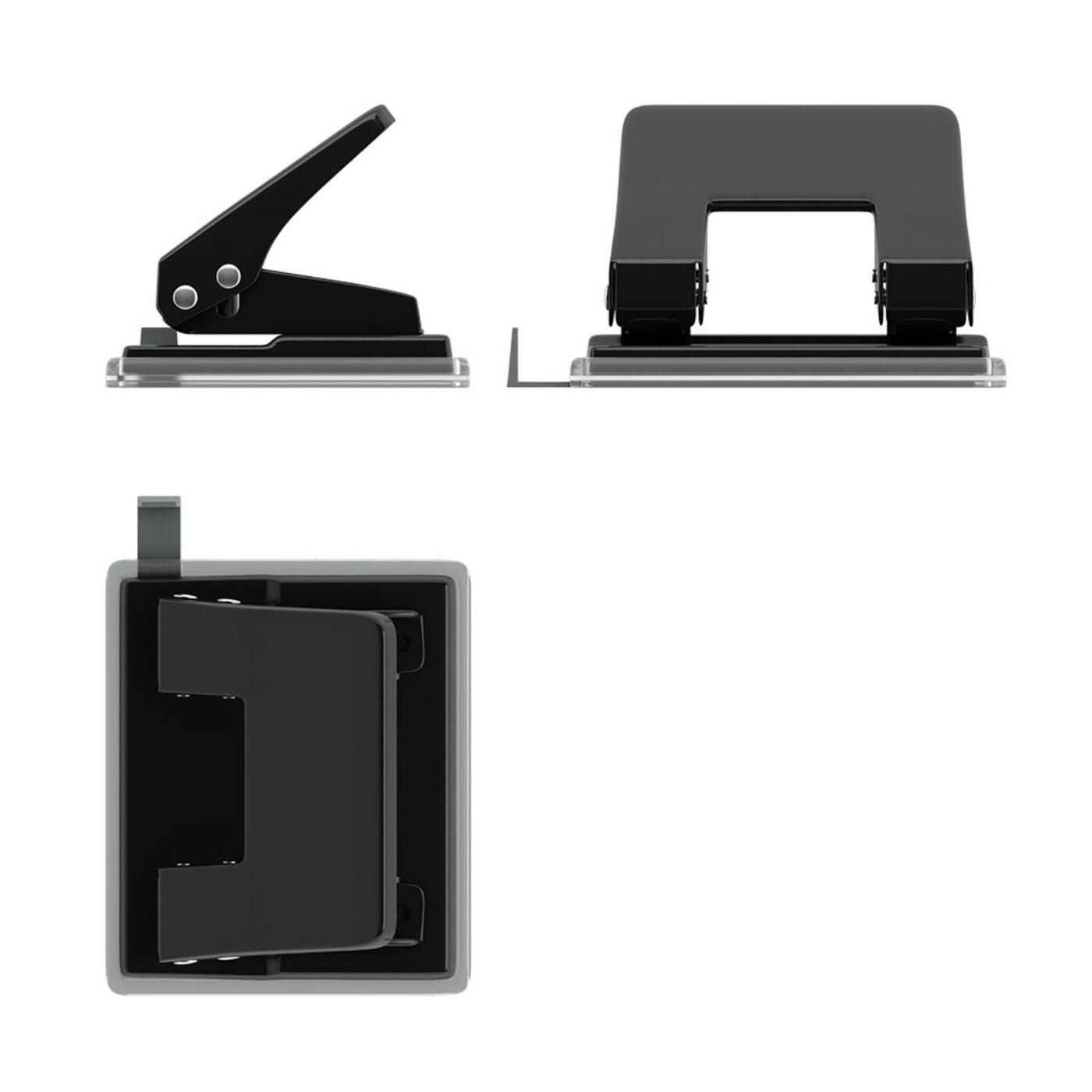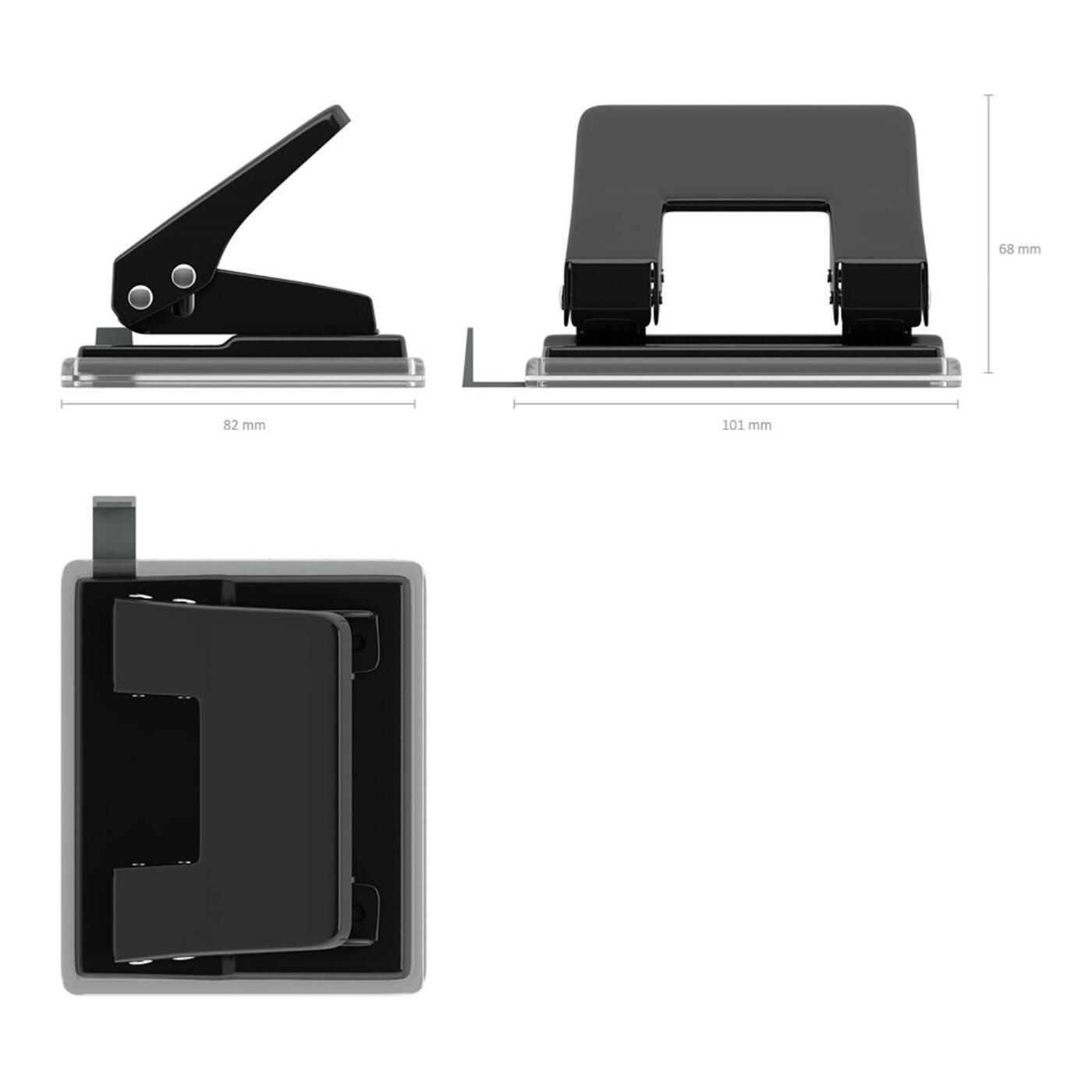 Дырокол до 20 листов с линейкой, Metallic, чёрный