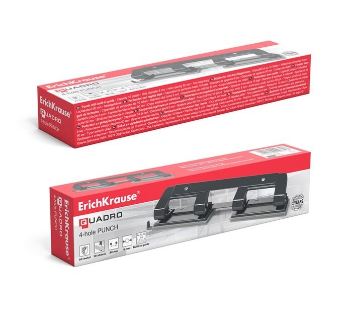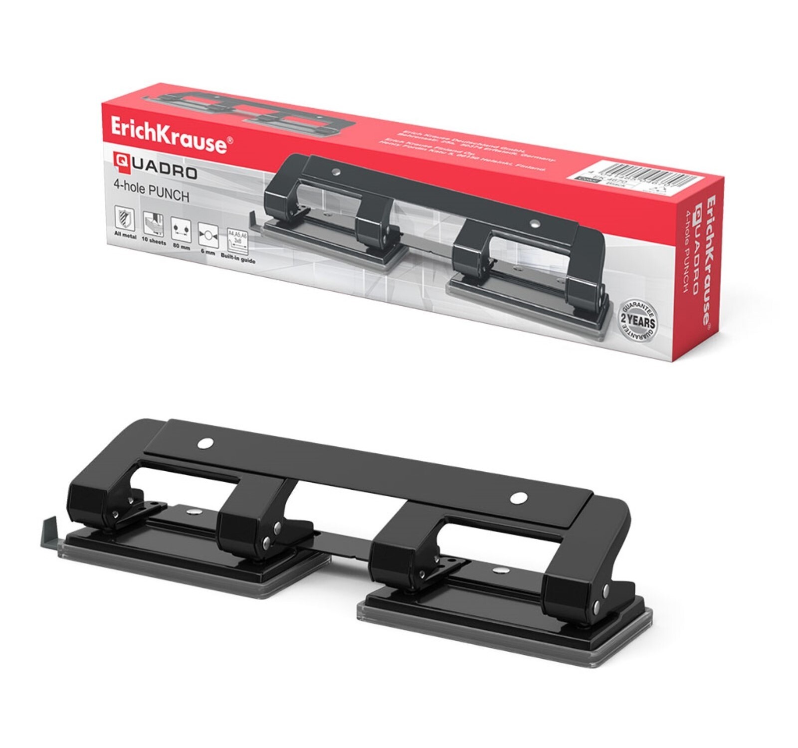 Дырокол 10 л., 4 отверстия, металлический, черный