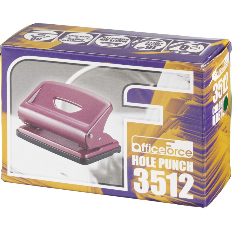 Дырокол Office Force 3512 F Small,зеленый,мет.корп,16л,2отв d6мм