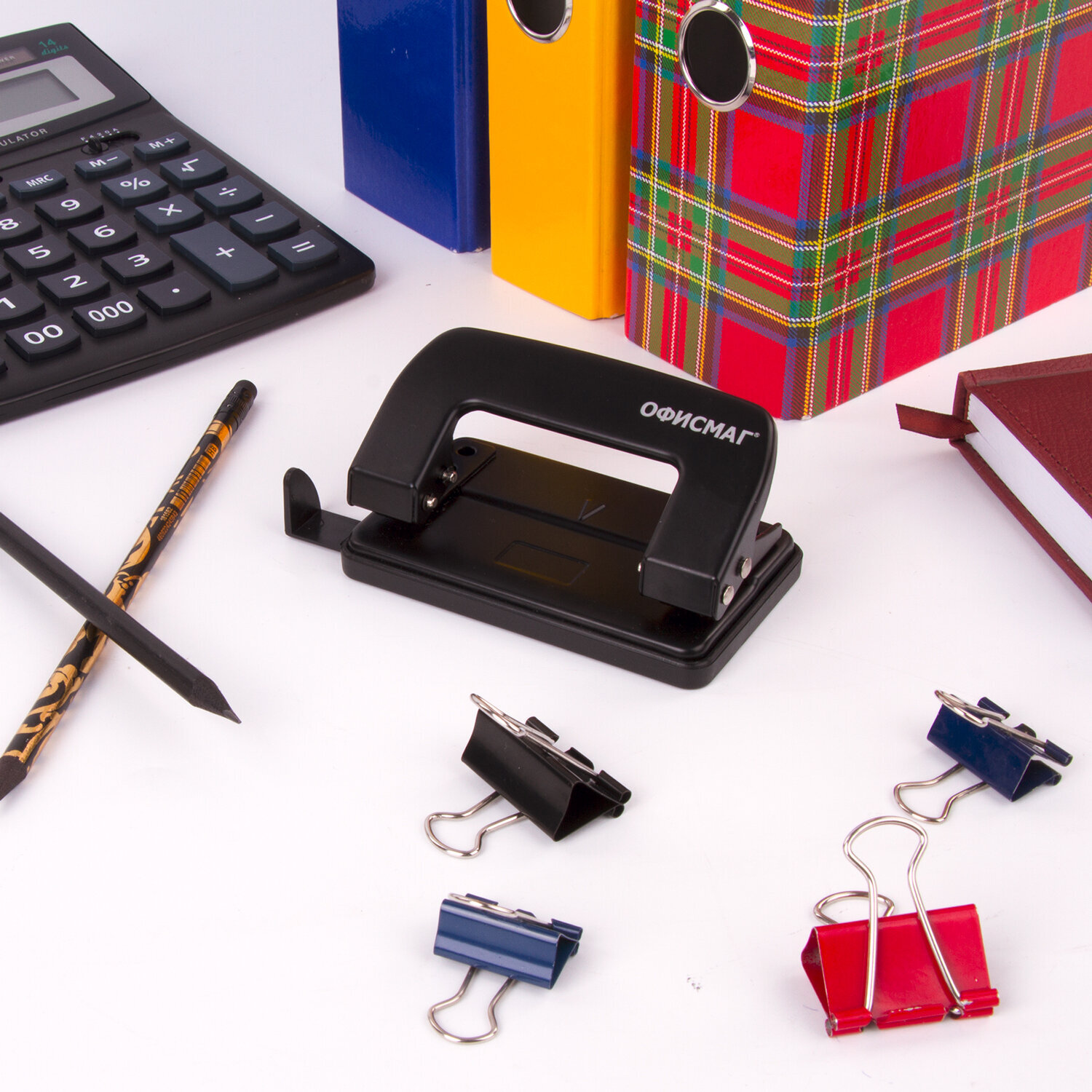 Дырокол на 1 отверстие до 12 листов. ассорти (красный. синий. зеленый)