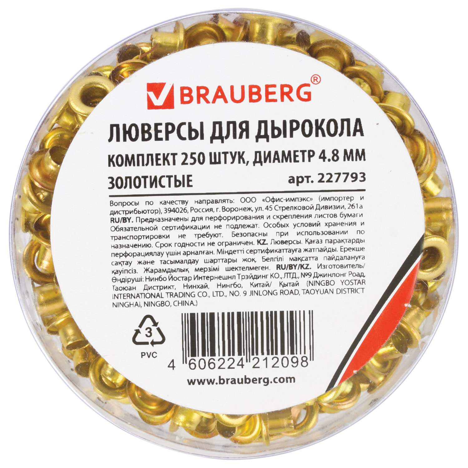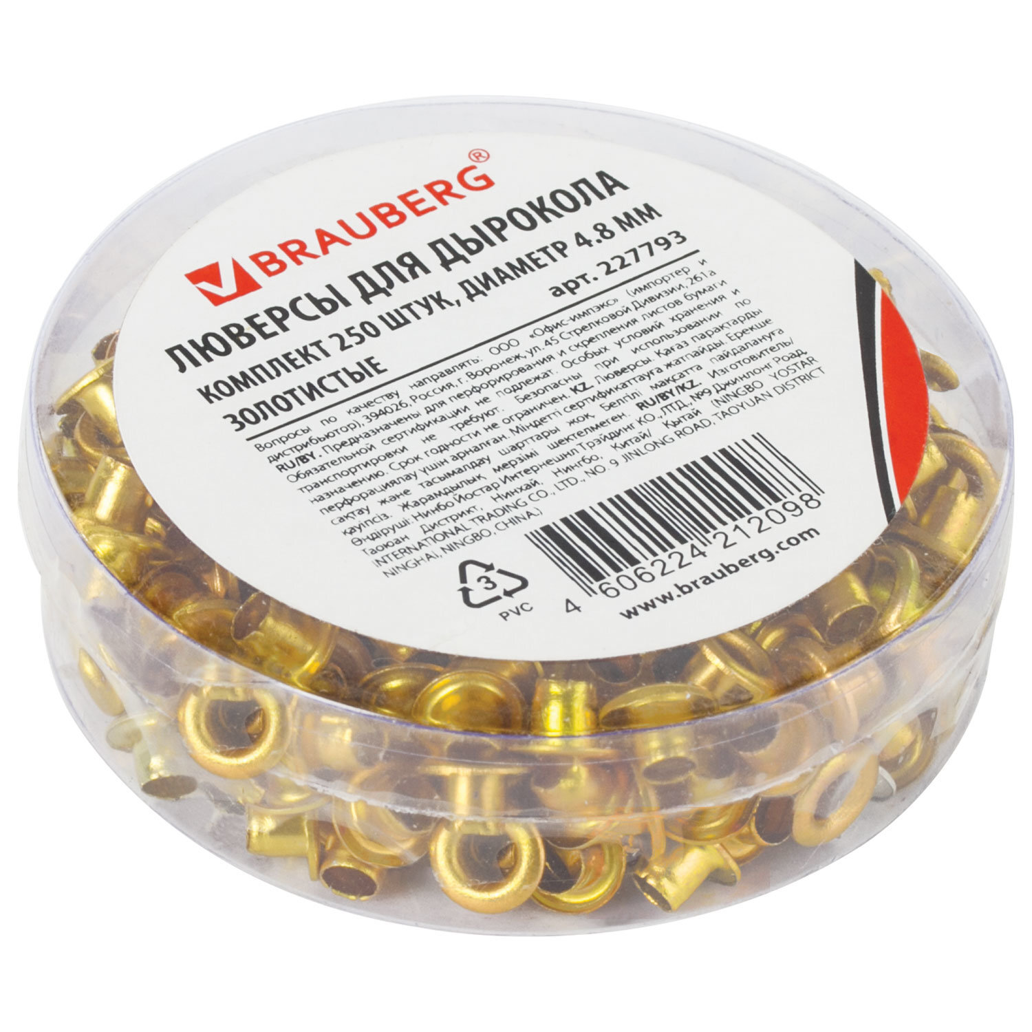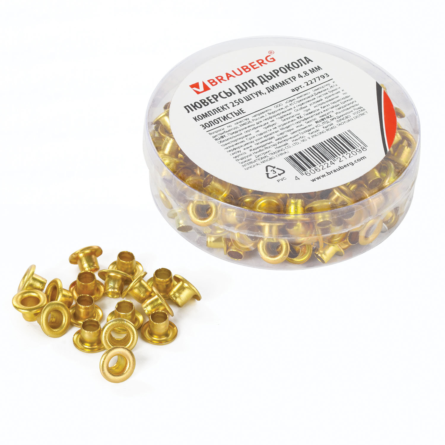 Люверсы NO NAME, КОМПЛЕКТ 250 шт., внутренний диаметр 4,8 мм, длина 4,6 мм, золотистые, 227793