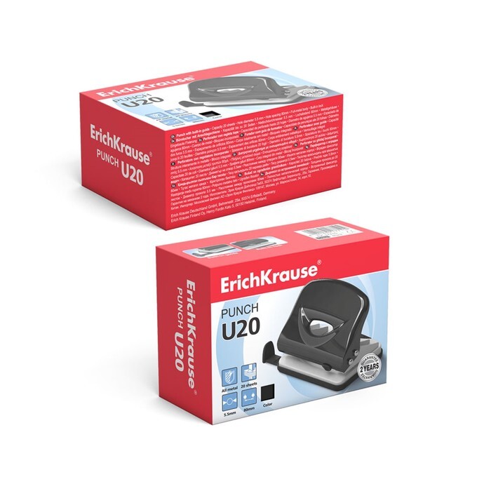 Дырокол на 40 листов E0120 "PRO" с линейкой, металл ассорти (381964) Deli