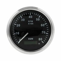 Тахометр 0-8000 об/мин со счетчиком моточасов делитель 0.5-250, черный циферблат, нержавеющий ободок, д. 85 мм KY07003