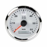 Тахометр 0-6000 об/мин со счетчиком моточасов делитель 1-10, белый циферблат, нержавеющий ободок, д. 85 мм KY07106
