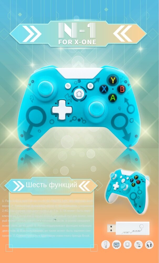 Геймпад джойстик,пульт беспроводной для X-BOX 360 и ПК черный, черный