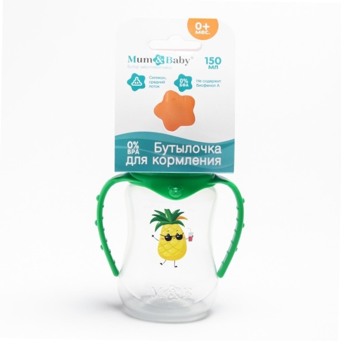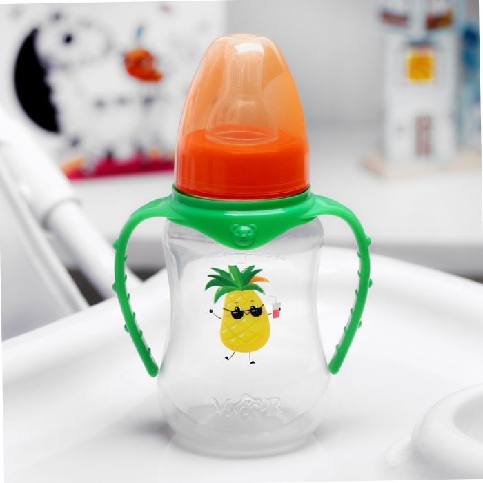 10 шт. Бутылочка для кормления Ананасик 150 мл приталенная, с ручками
