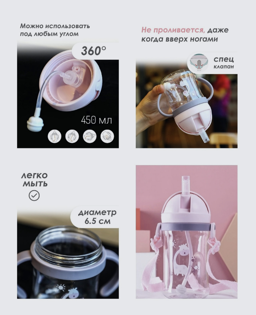 2 шт. Бутылочка для кормления Русалка 250 мл цилиндр, с ручками