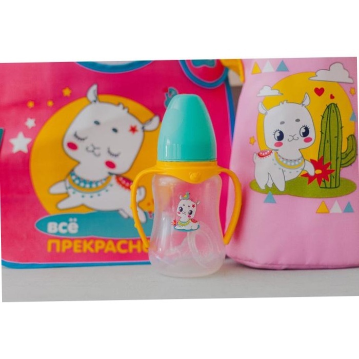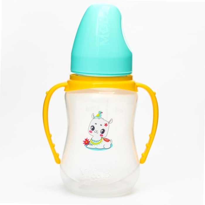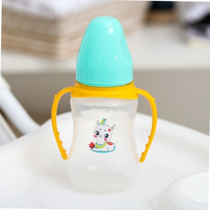 3 шт. Бутылочка для кормления ТРЕНД. Лама 150 мл приталенная, с ручками, цвет бирюзовый
