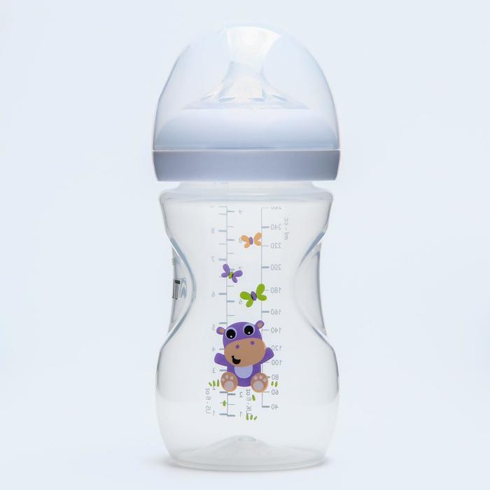 Бутылочка Natural 2.0 260 мл., с принтом бегемот, от 1 мес., медленный поток