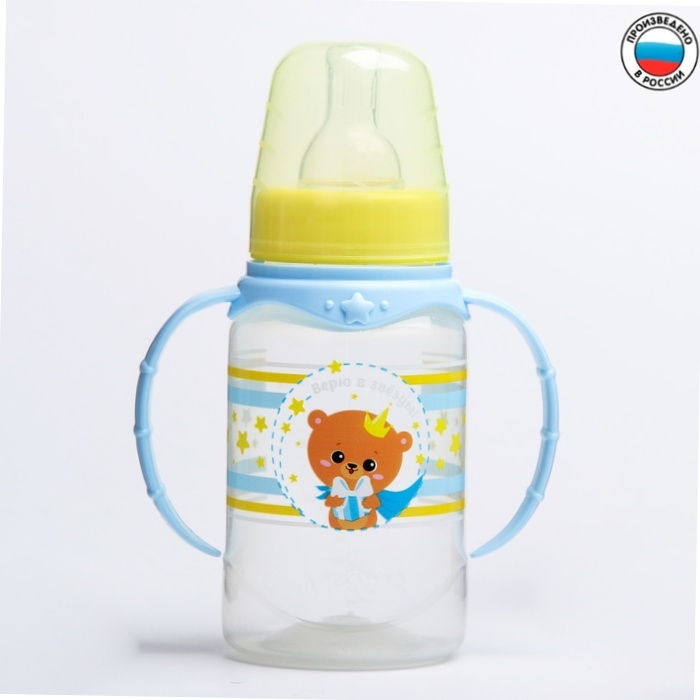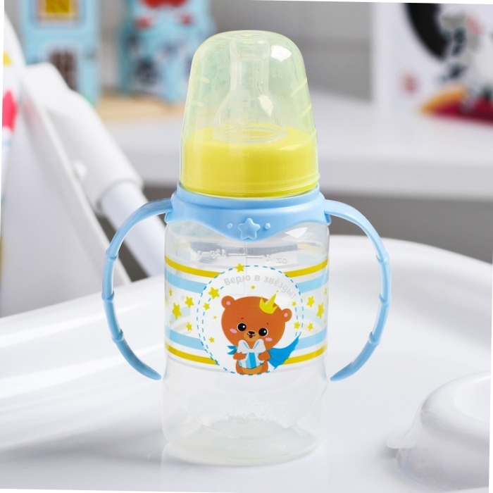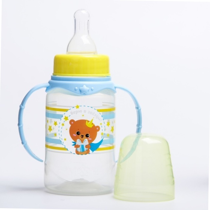 10 шт. Бутылочка для кормления Мишка принц 150 мл цилиндр, с ручками
