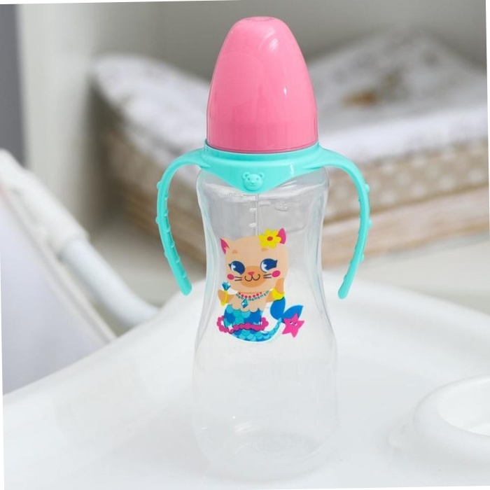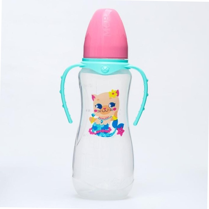 3 шт. Бутылочка для кормления ТРЕНД. Которусалка 250 мл приталенная, с ручками, цвет розовый
