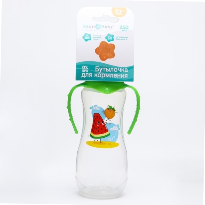 2 шт. Бутылочка для кормления Арбуз 250 мл приталенная, с ручками