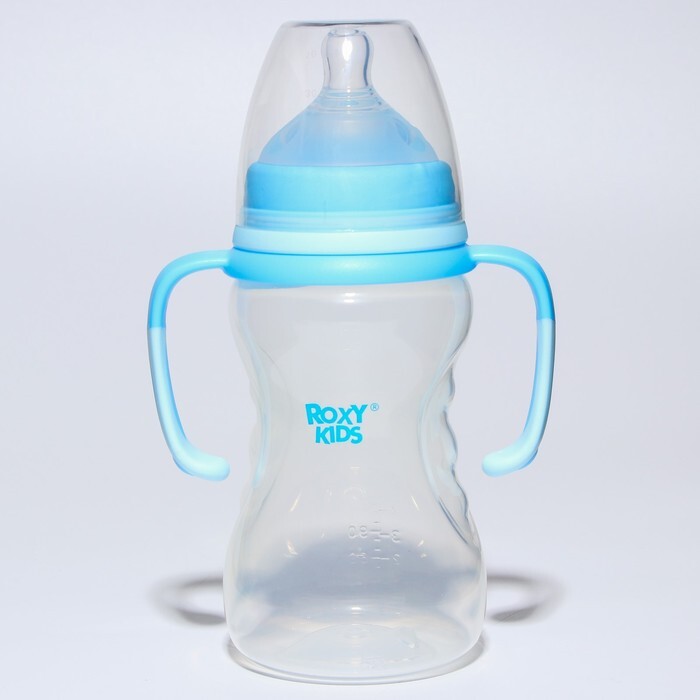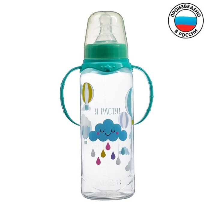 Бутылочка для кормления детская приталенная, с ручками, 250 мл, от 0 мес., цвет синий