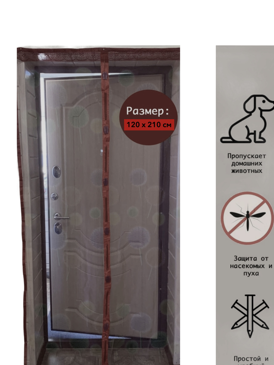 Сетка антимоскитная для дверей, 90 * 210 см, на магнитах, цвет бежевый