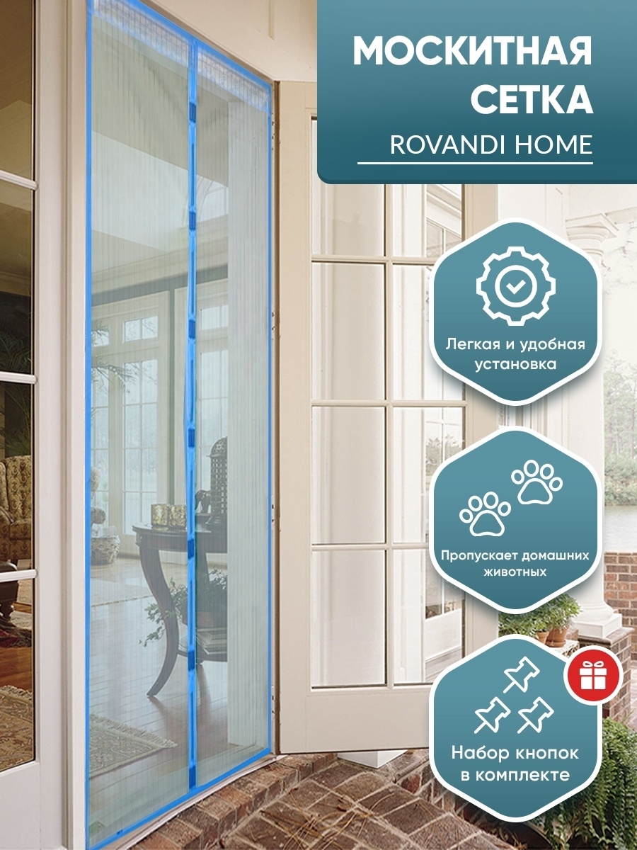 Москитная сетка дверная на магнитах 90 см/210 цвет синий
