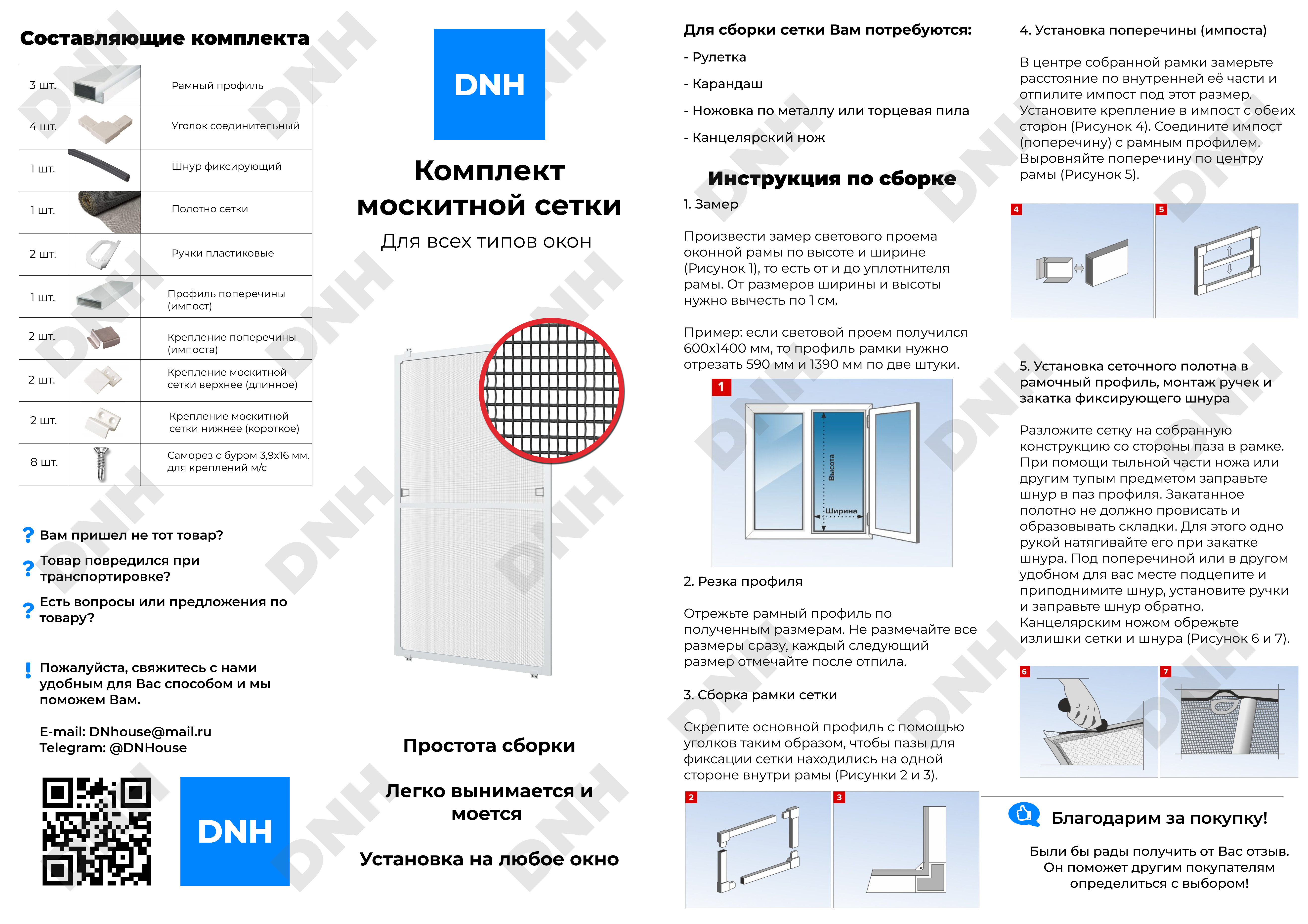 Готовая москитная сетка 640*1440 с металлическими креплениями