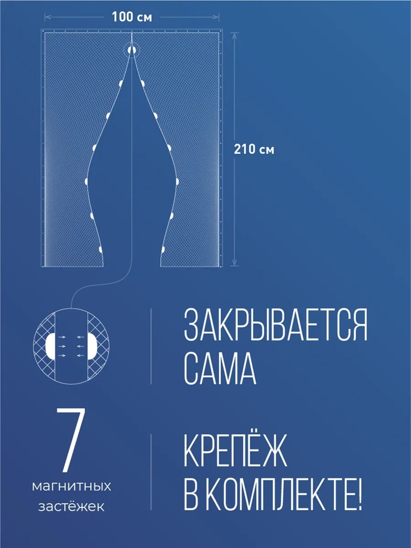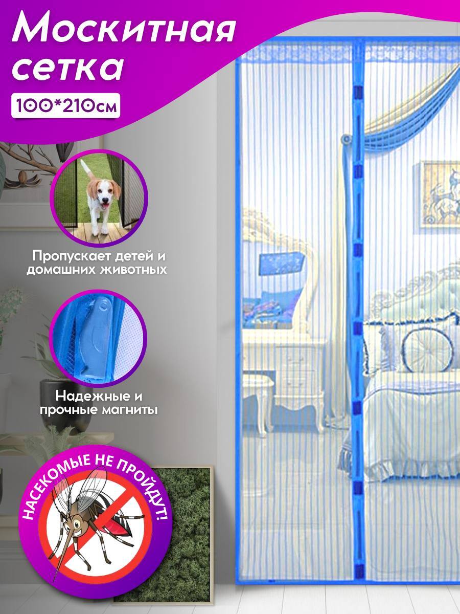 Сетка москитная на магнитах для двери / шторка антимоскитная от комаров дверная / Синий 100x210