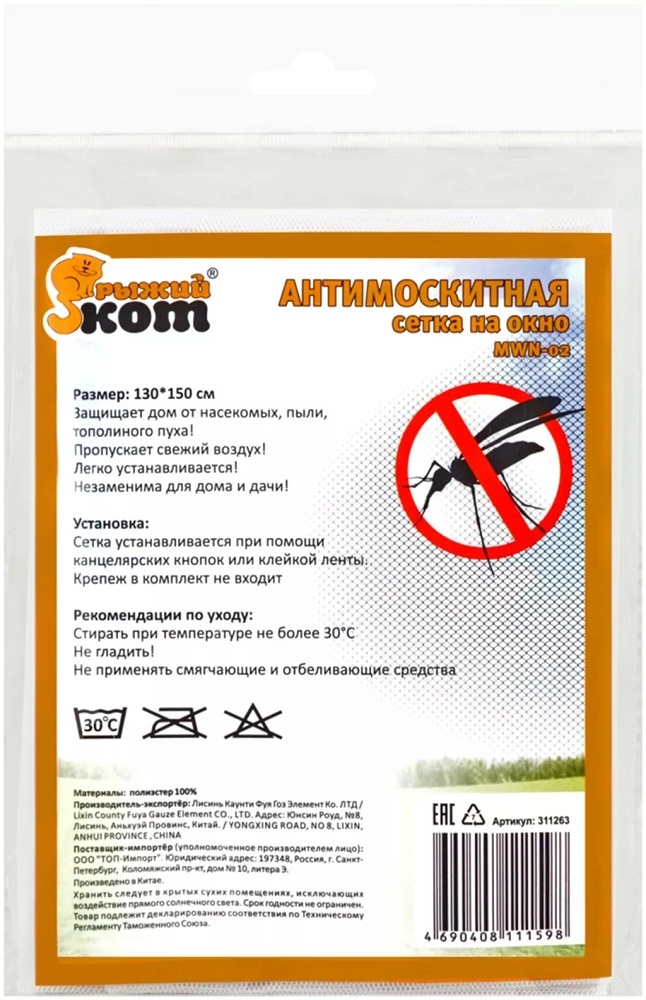 Москитная сетка на окна Рыжий кот Mosquito net MWN-02, белая, 130*150см, 1 шт.