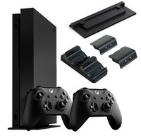 Microsoft XBOX One X + 2-й геймпад + 2 аккумулятора и док-станция для геймпадов + стенд