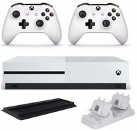 Microsoft XBOX One S (500GB) + 2-й геймпад + 2 аккумулятора и док-станция для геймпадов + стенд