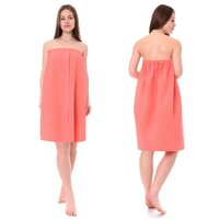 Накидка для сауны жен, цв.коралл, ваф.полотно 160г/м, хл100%