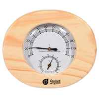 Термометр с гигрометром Банная станция овальный в деревянном корпусе для бани и сауны, 16х14х3 см