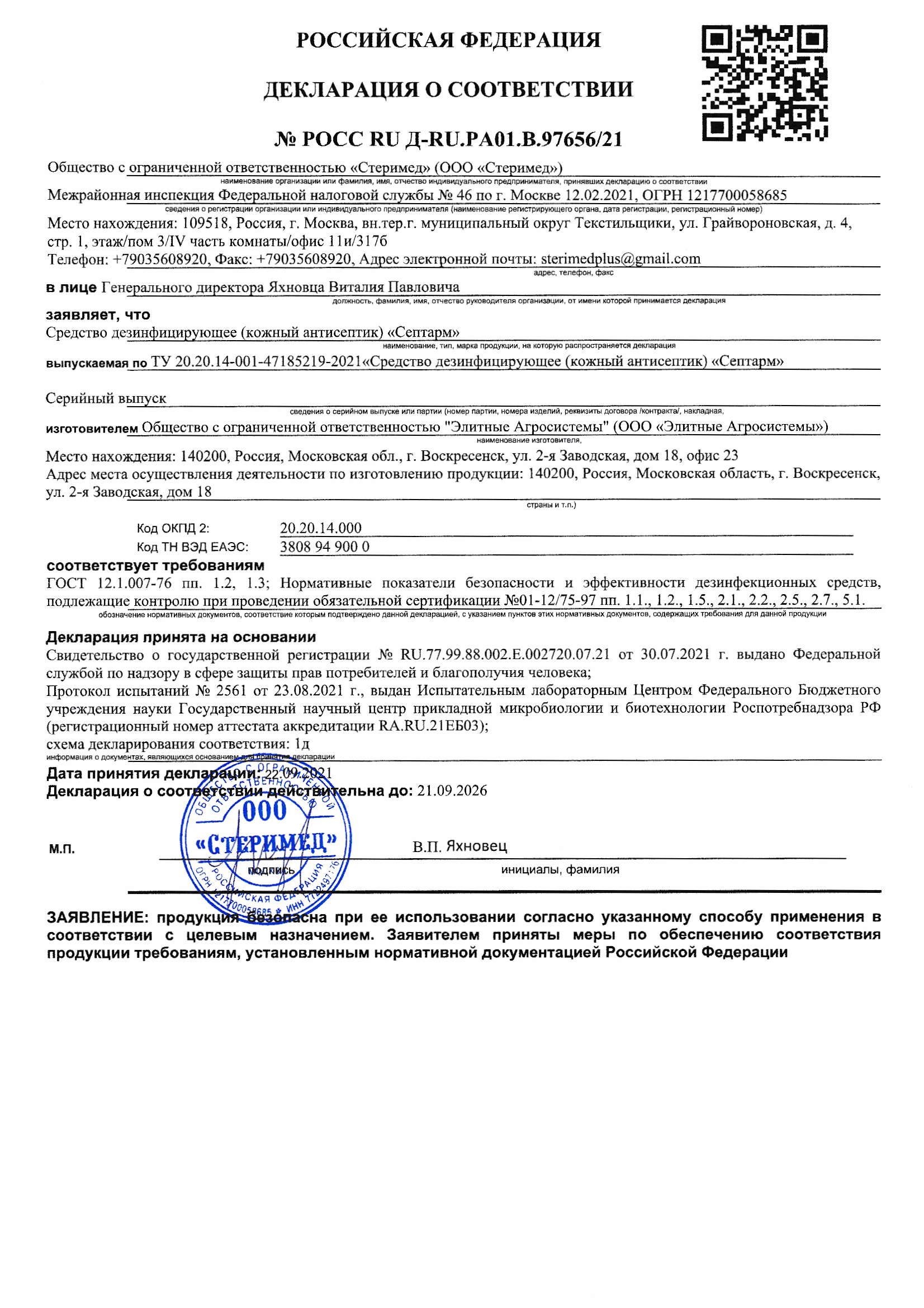 Кожный антисептик санитайзер Септарм спиртовой 750мл. (Дезинфицирующее средство )