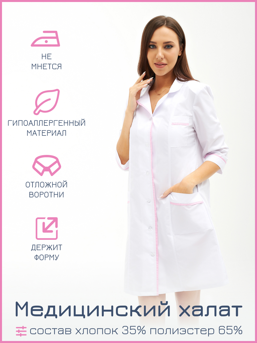 Халат медицинский женский М-235, тиси, белый, размер 42