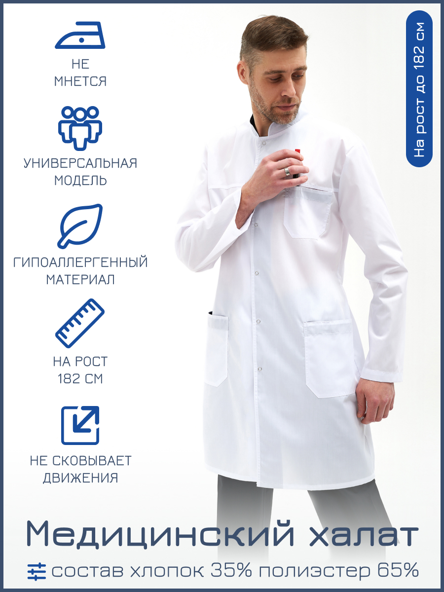 Халат медицинский/Халат мужской/Халат Медик/Халат хирургический/Спецодежда/Медицина