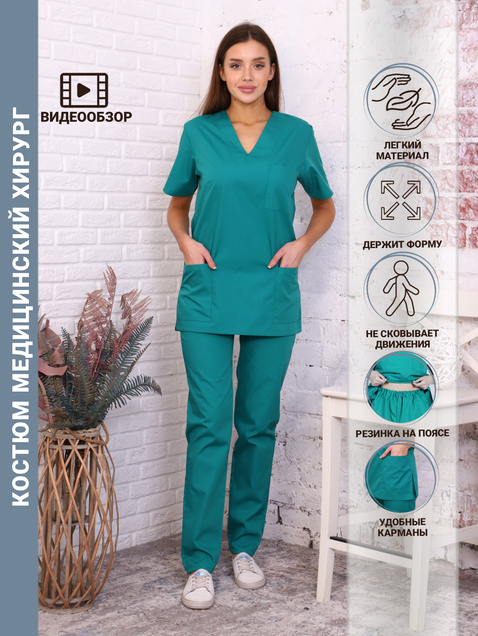 Костюм хирургический женский / Медицинский костюм / Медицинская форма / Медицинская спецодежда